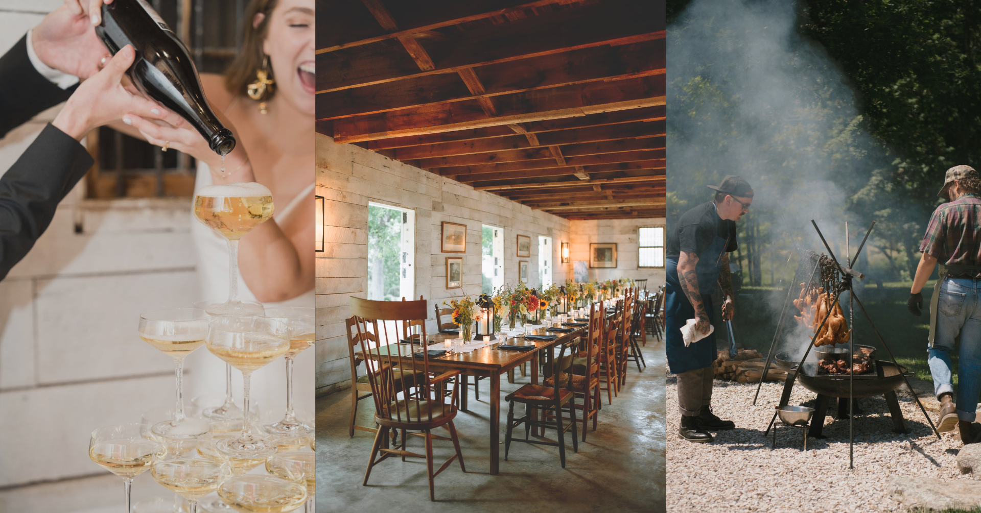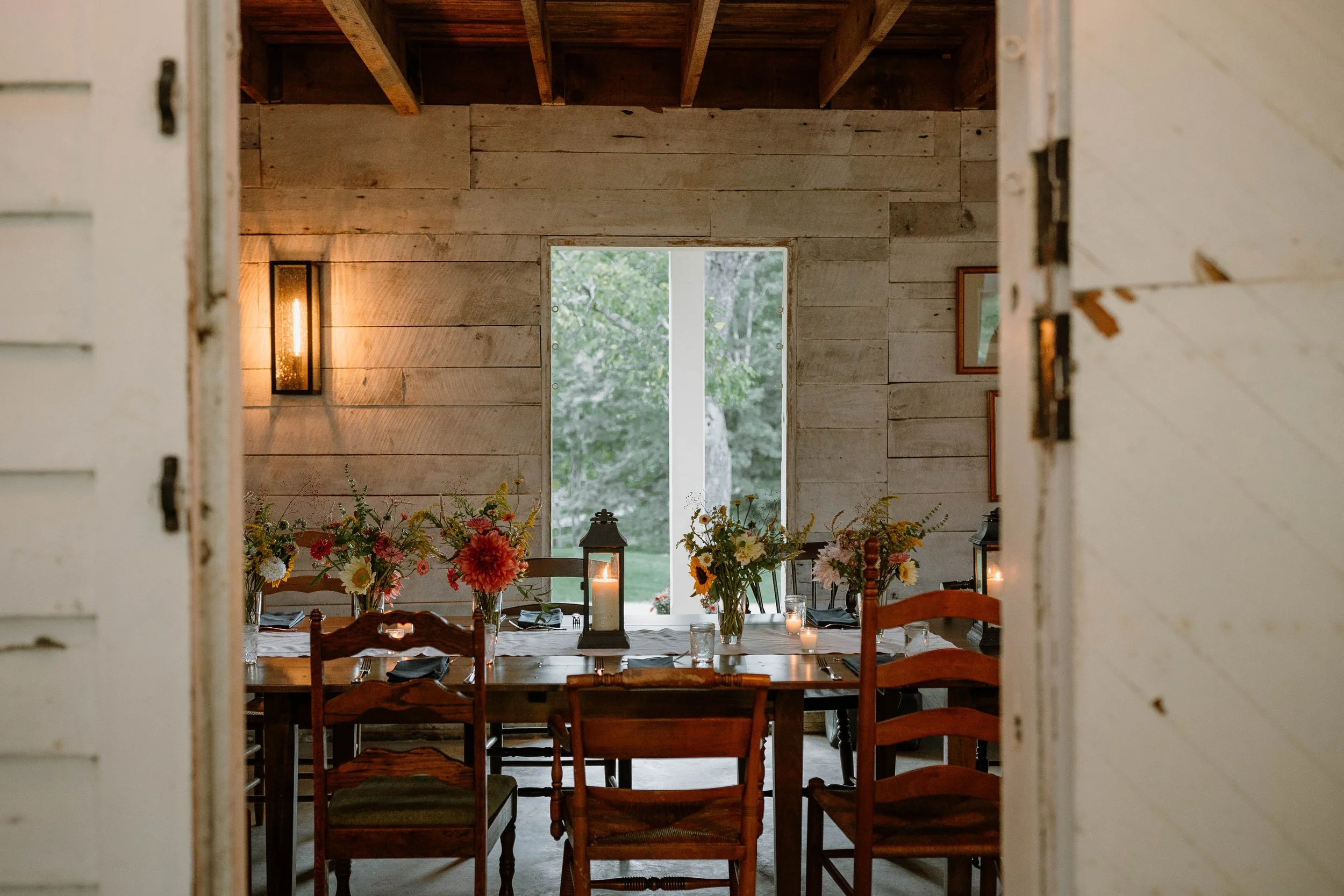 The space hosts a range of events throughout the year—from weddings and rehearsal dinners to private celebrations, workshops, retreats, and community events. With its historic character and stable doors that open onto the surrounding patios and lawn, the North Stable allows guests to move easily between indoor and outdoor spaces on the farm.